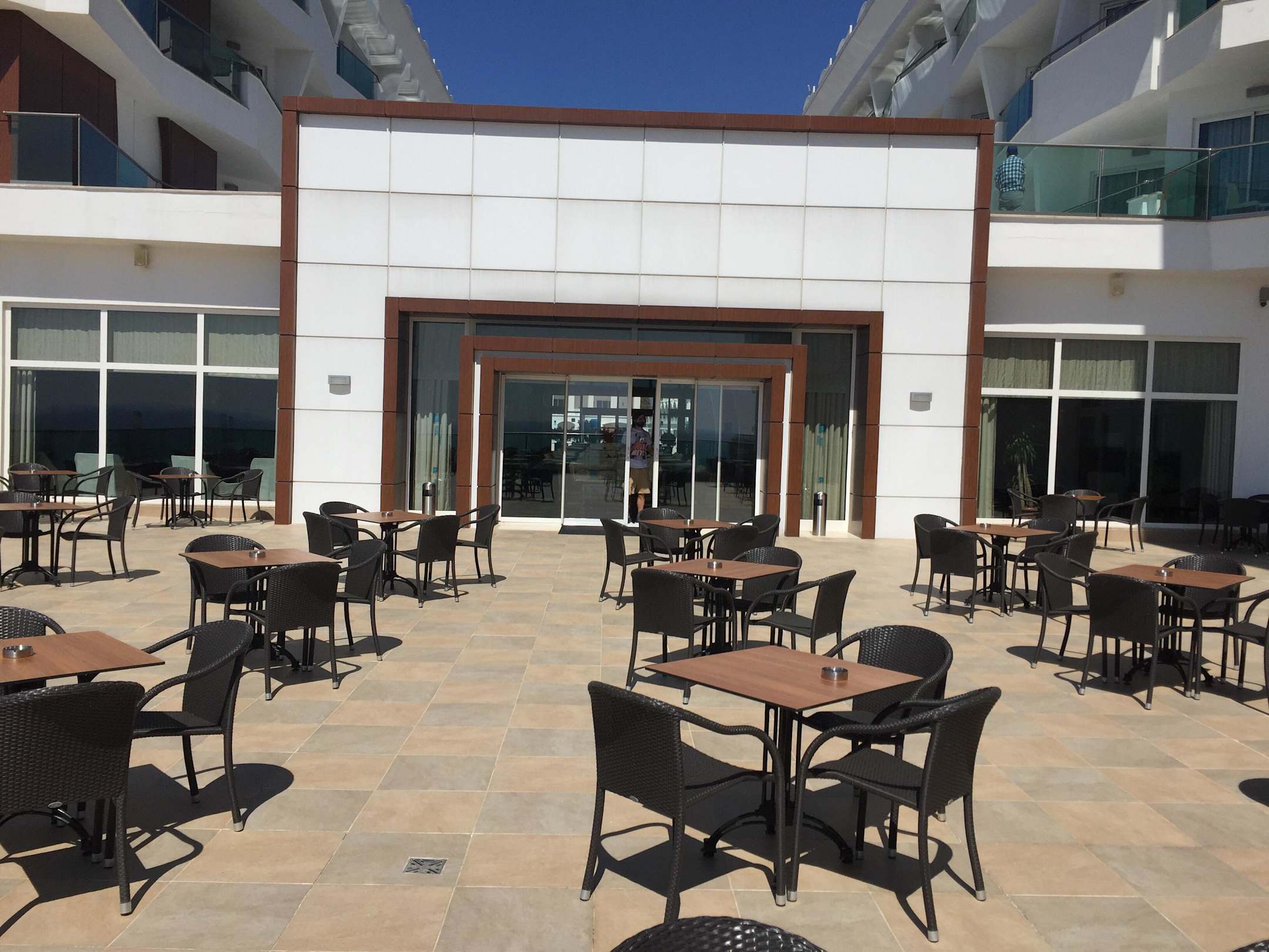 Balkon mit Sicht auf Hauptgebäude zur Lobby