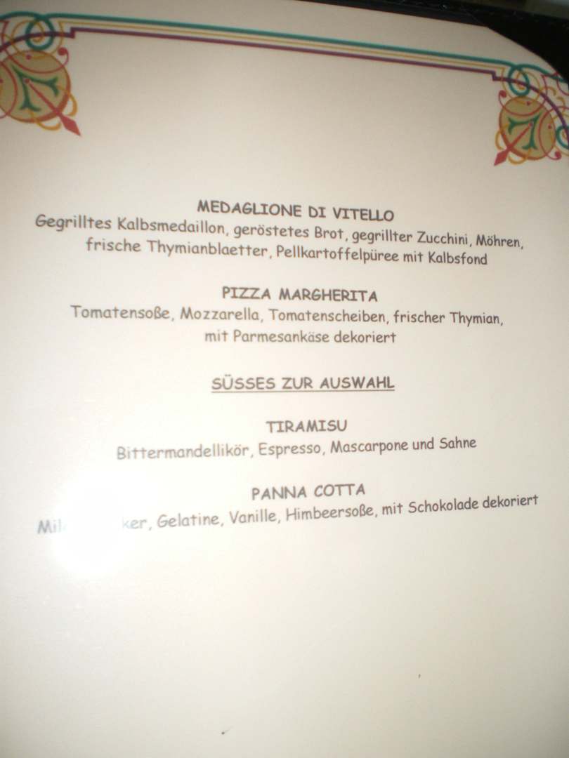 Menuekarte vom italienischen Restaurant 2.Teil