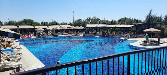 Hinterer Teil des Pools und in der Ecke versteckt sich die beste Kaffeebar inkl. der freundlichsten, nettesten und sehr wundervollsten Barista (Ayche) westlich der Adria😍
