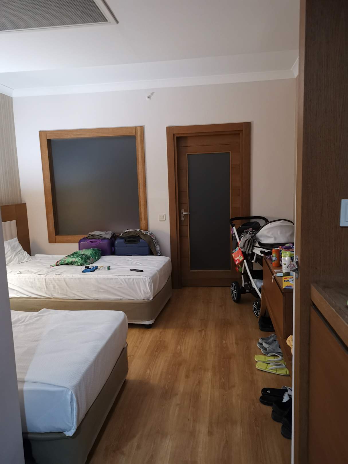 Familienzimmer 2513 mit 2 von einander getrennten Schlafräumen. 1 Zimmer 2 Einzelbetten, zweites Zimmer 1 Doppelbett. Beider Zimmer jeweils mit Flat TV und deutschen Programmen