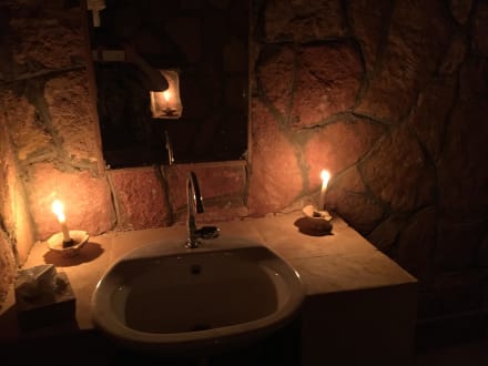 Toilette bei Nacht mit Kerzen beleuchtet