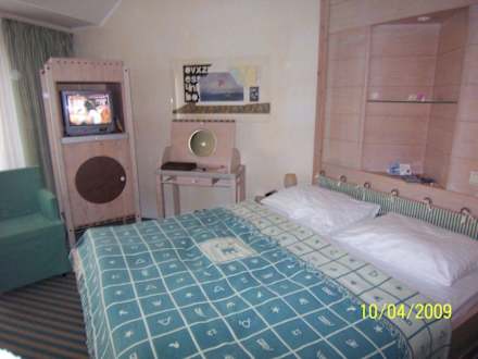 Doppelbett mit Schreib-Schmicktisch und TV
