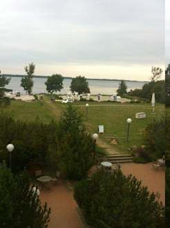 Blick auf Privatstrand und Bodden