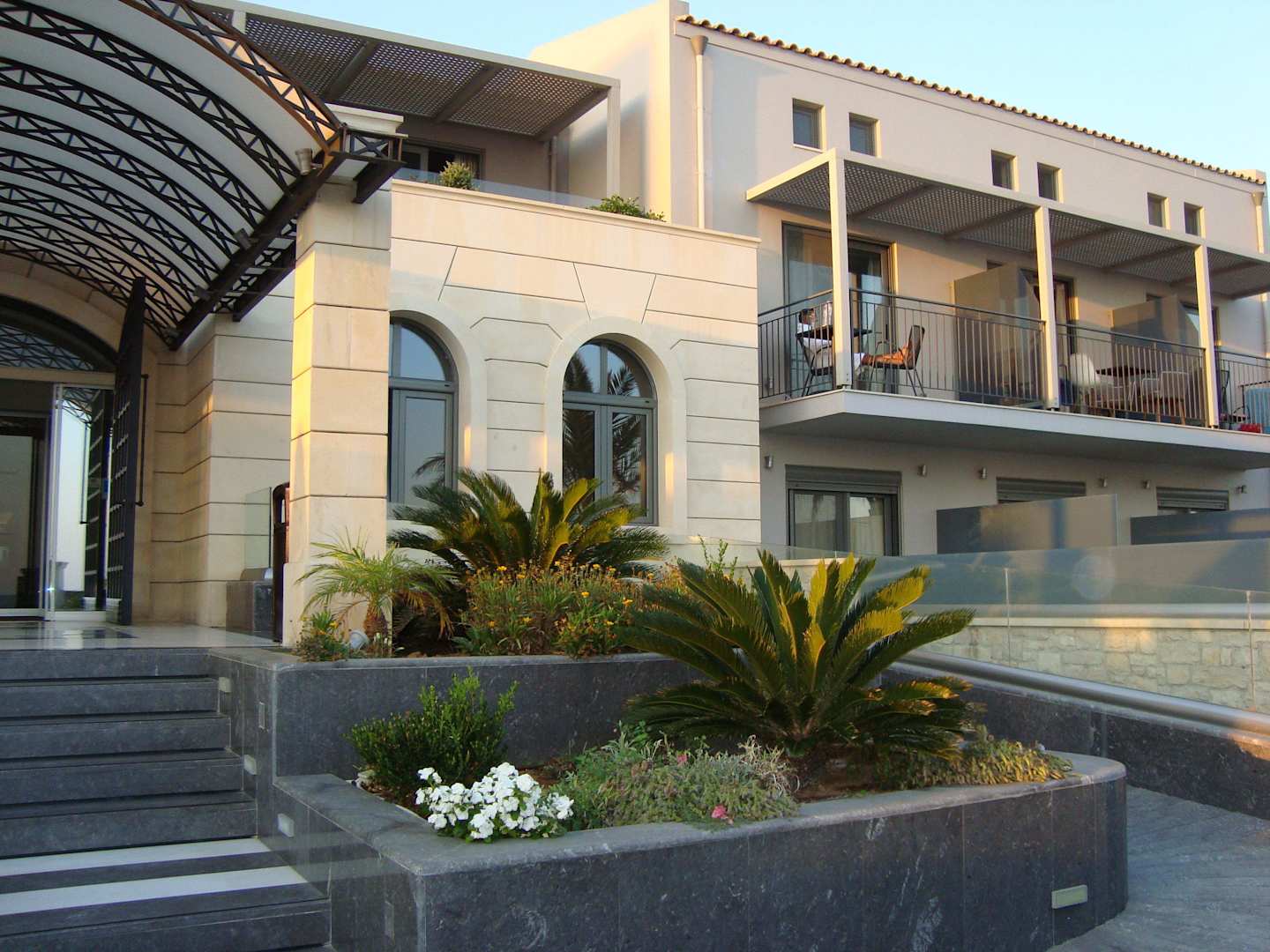 The design of the hotel building is very modern