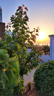 Gartenanlage bei Sonnenuntergang