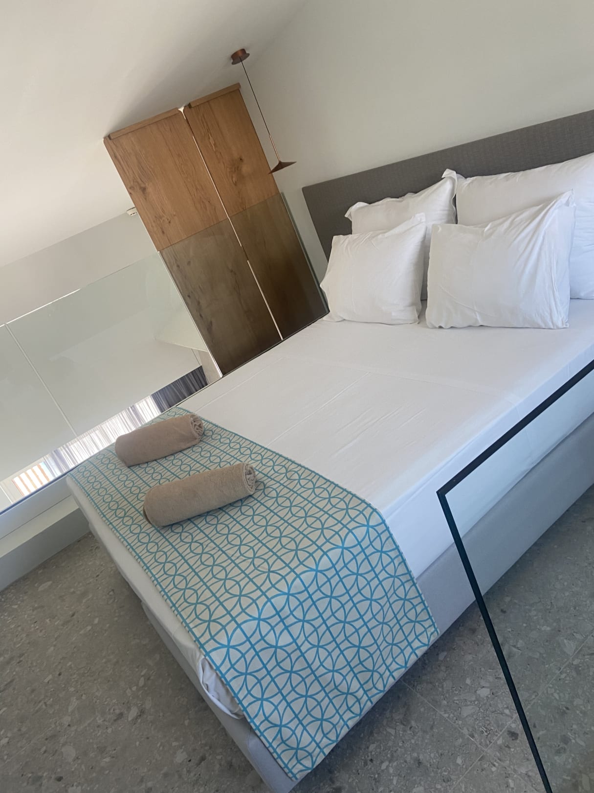 Das obere Doppelbett im Maisonettezimmer, im Zimmerblock SENSUS (ZimmerNr. 533)