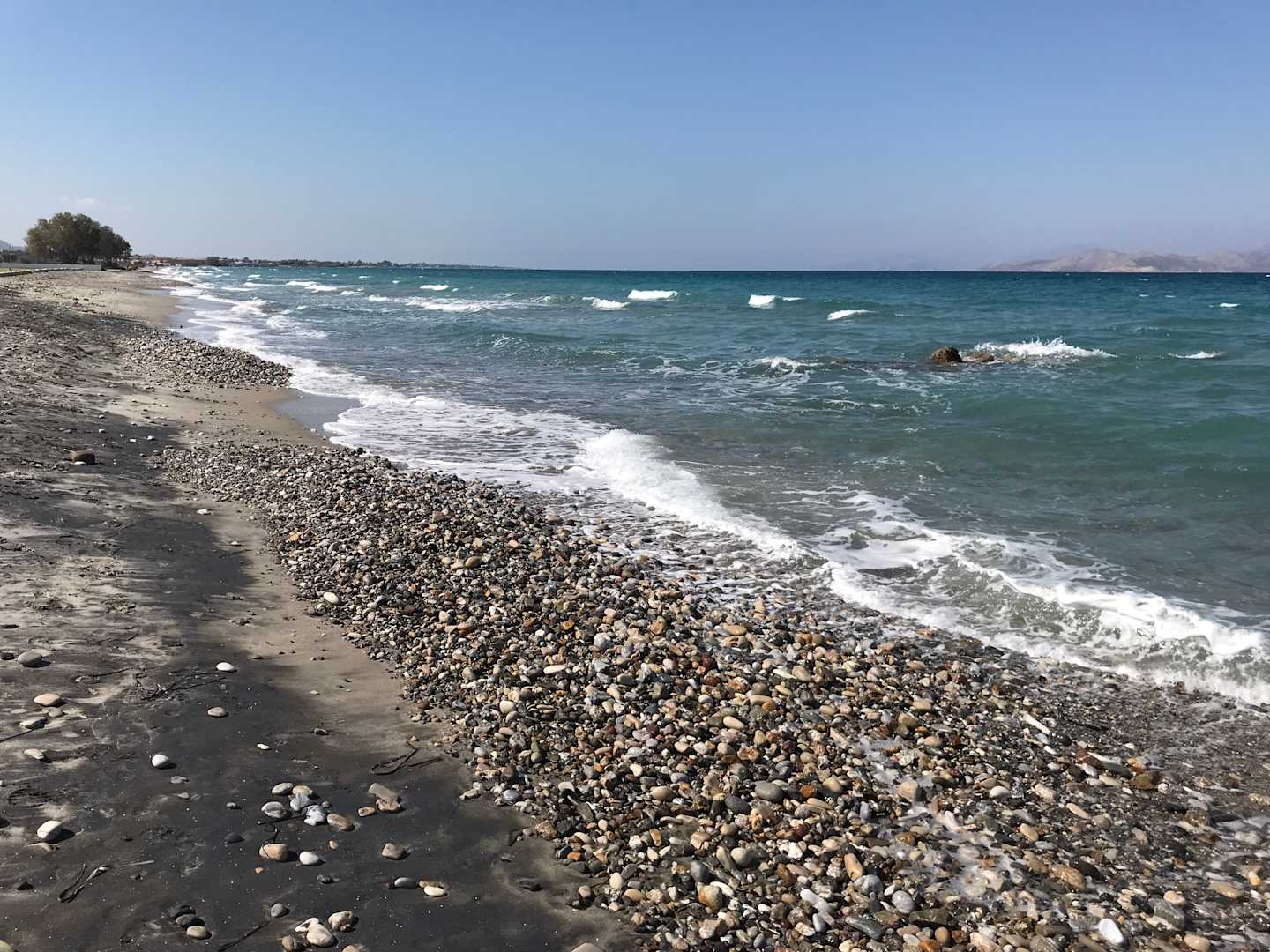 StrandDie nächste Hotelanlage ist recht weit entfernt. Hier geht übrigens im Oktober mittig die Sonne unter
