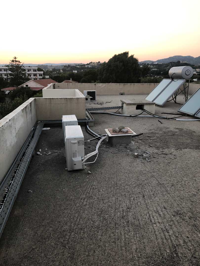 Auf dem Dach, alles verdreckt