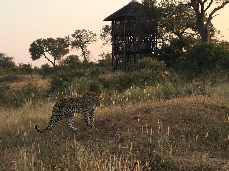 Leopardenbesuch nahe des Camps vor dem Baumhaus