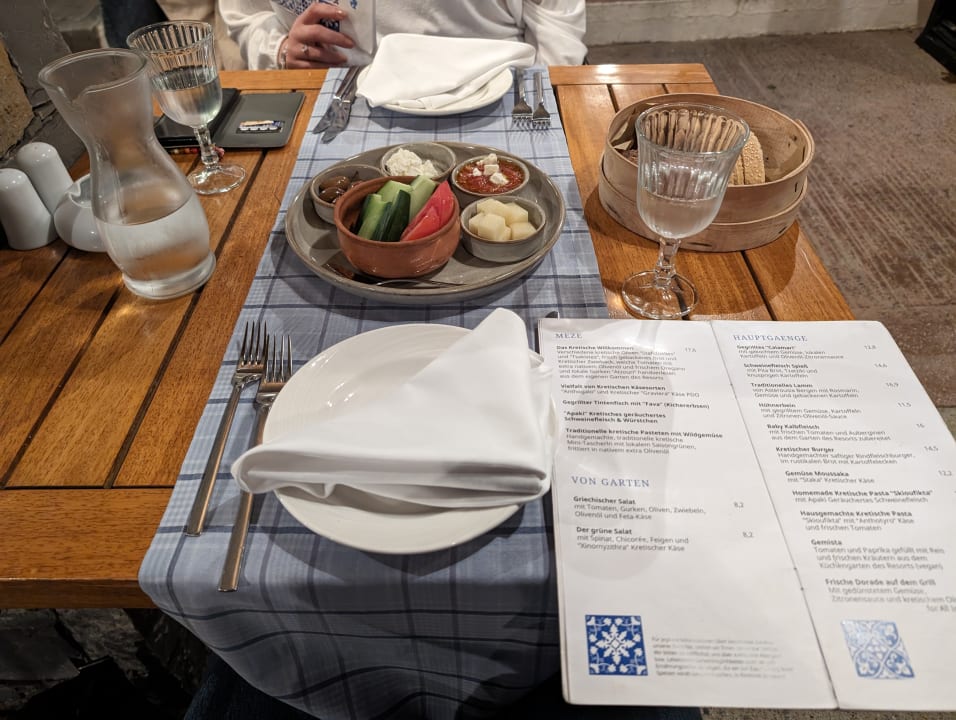So beginnt der Abend in der griechischen Taverne / Themenrestaurant in Strandnähe. Sehr freundlicher und exklusiver Service. Die Speisen sind empfehlenswert.
