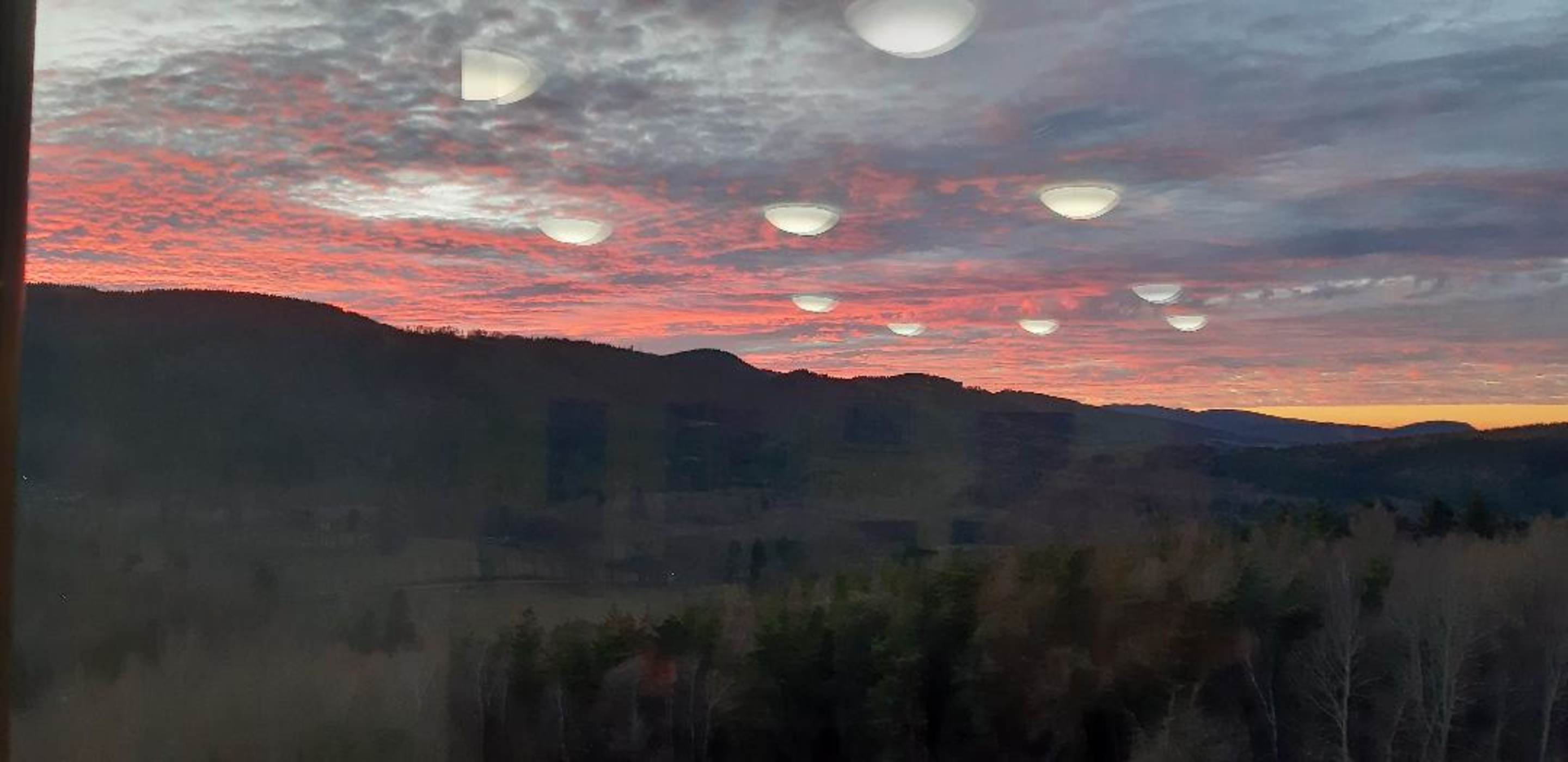 "UFO" kommen vom Inselsberg - Innenleuchten spiegeln auf dem Bild