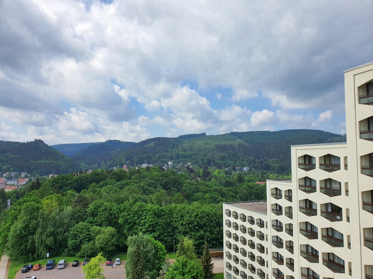 Schöner Ausblick. Viel Grün und Wald.