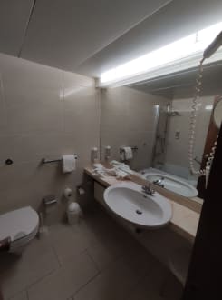 Badezimmer mit Duschwanne... Bisher unser erstes Hotel mit der Ausstattung