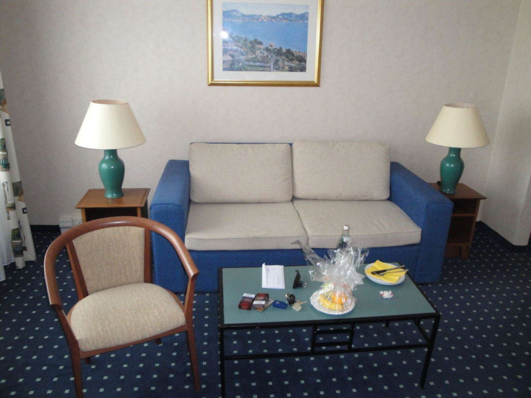 Separate Sitzecke mit Couch und Sessel sowie Tisch.