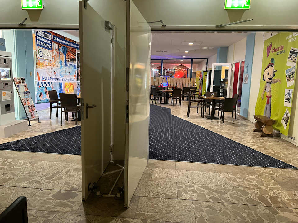 Weg zu den Spielzimmern für die Kinder, Air Hockey und Dart