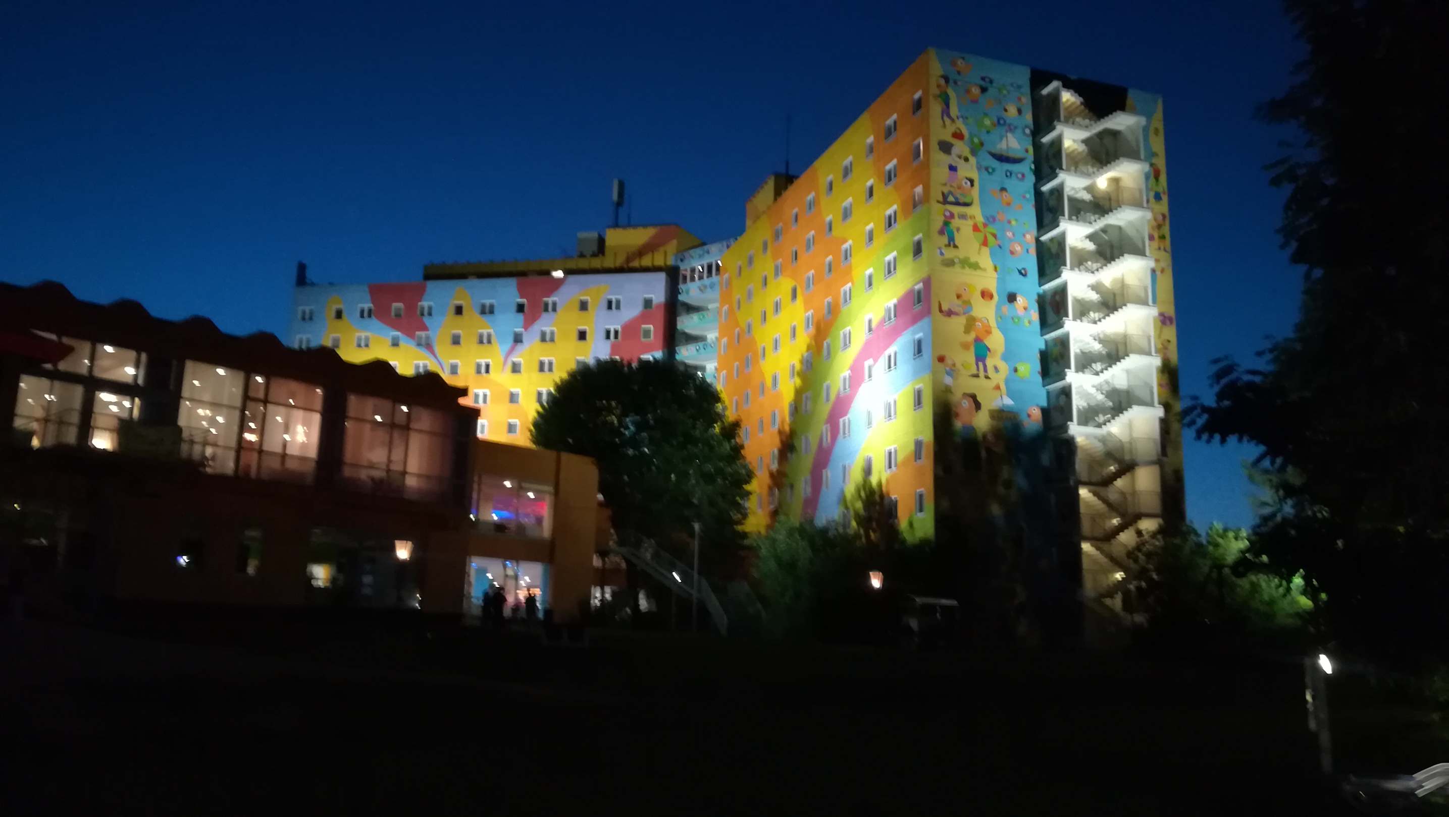 Hotel vom Spielplatz aus gesehen