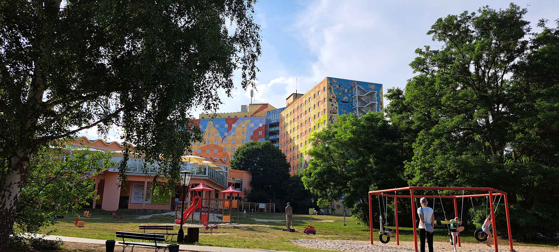 Spielplätze mit Blick auf das Hotel