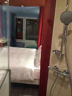 Blick von der Dusche ins Zimmer