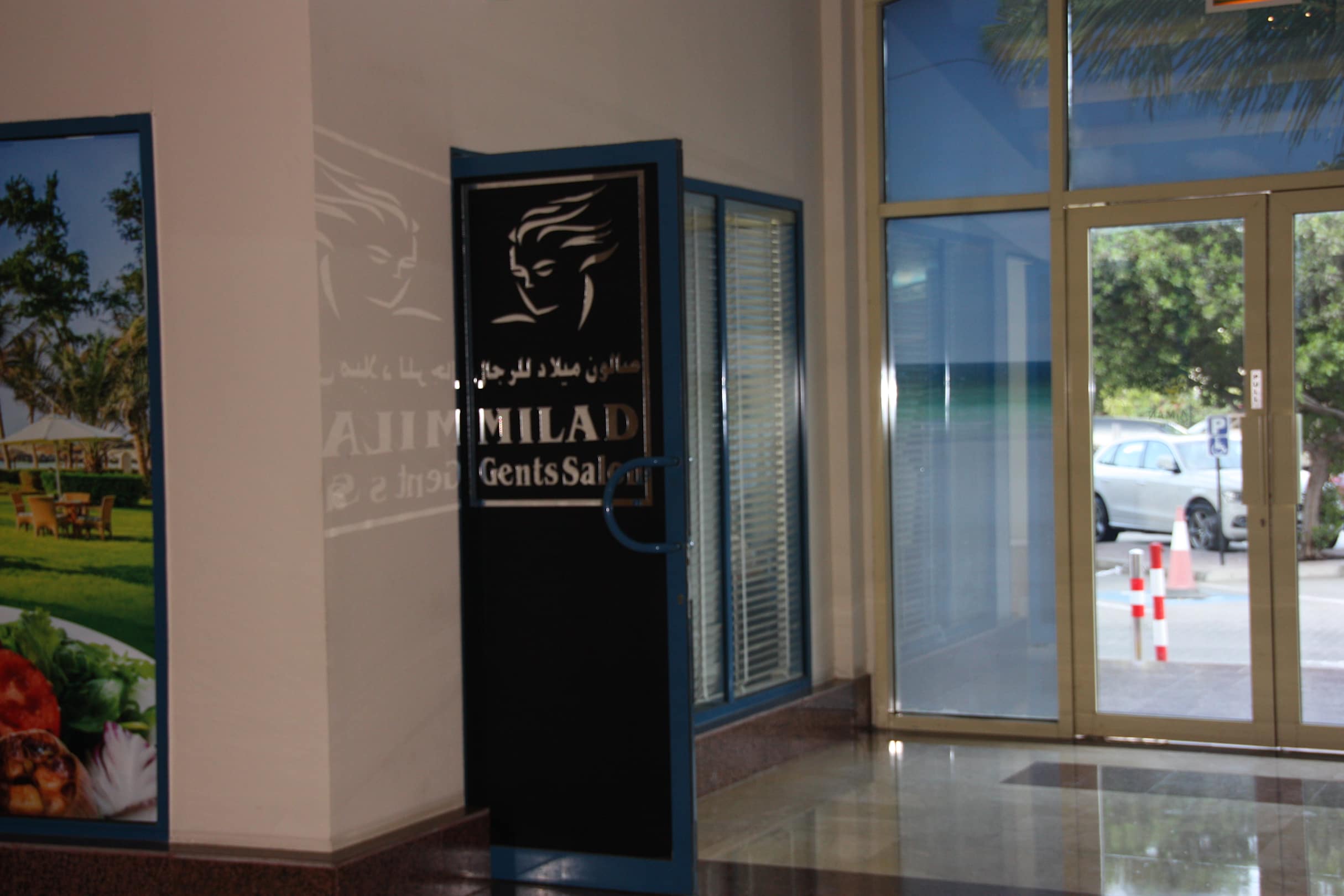 Frisör. Eine Seite für Frauen, die andere für Männer.