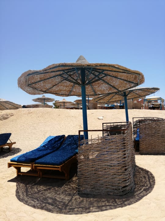 Strandkostenlose Liegen mit Schirmen - ausreichend vorhanden