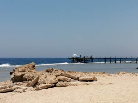 StrandZugang zum offenen Meer über den Steg. Meistens gelbe oder rote Flagge aufgrund der starken Wellen - sehr schönes Riff