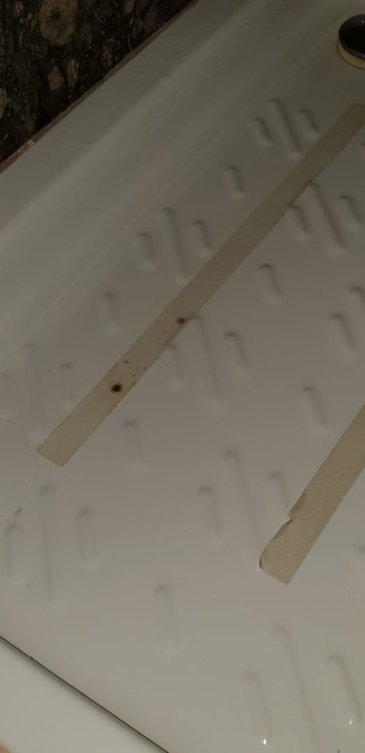 Schimmelige Klebestreifen in der Duschtasse