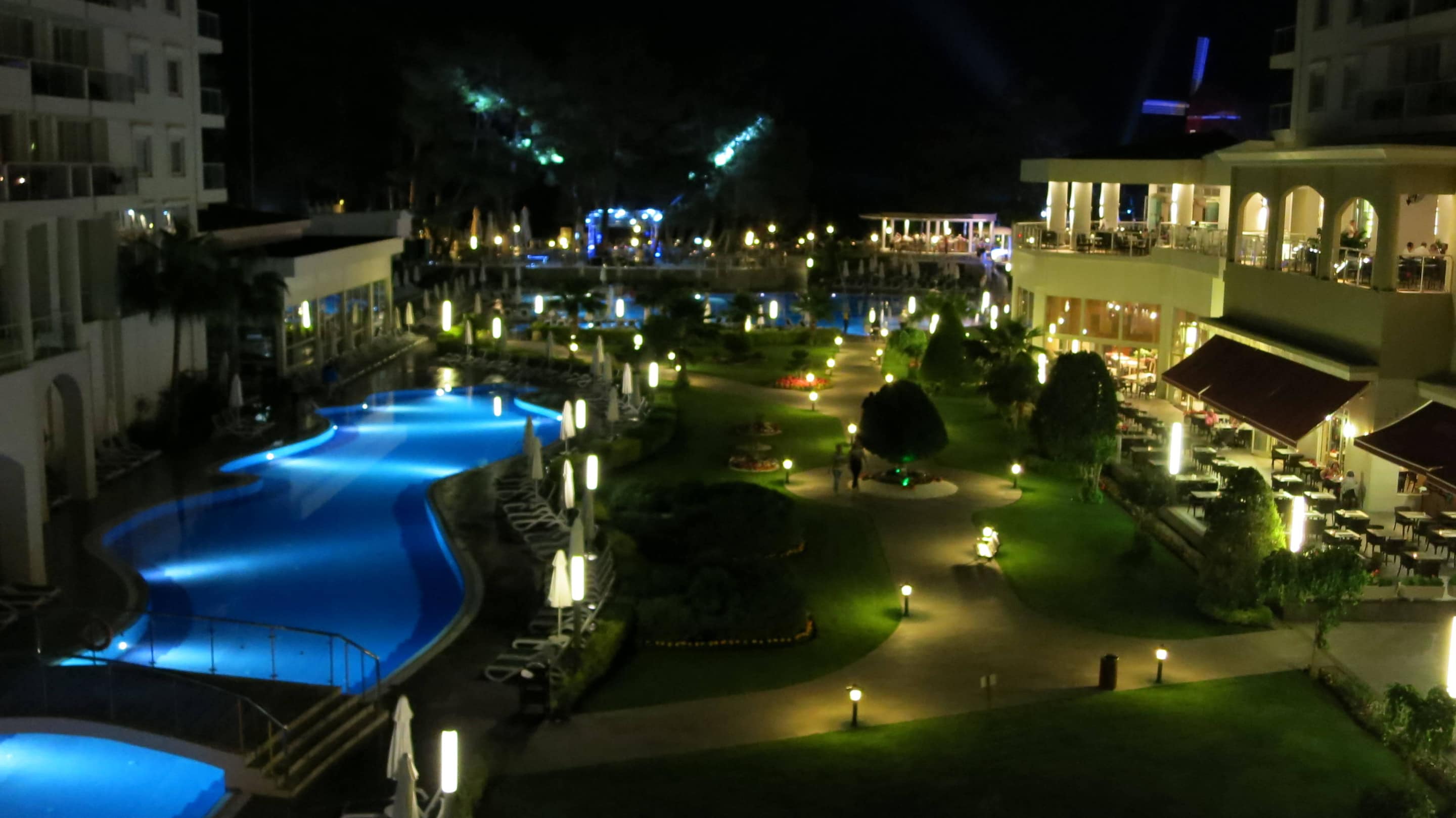 Pool und Garten bei Nacht