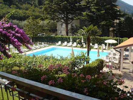Blick vom Zimmer auf den Pool