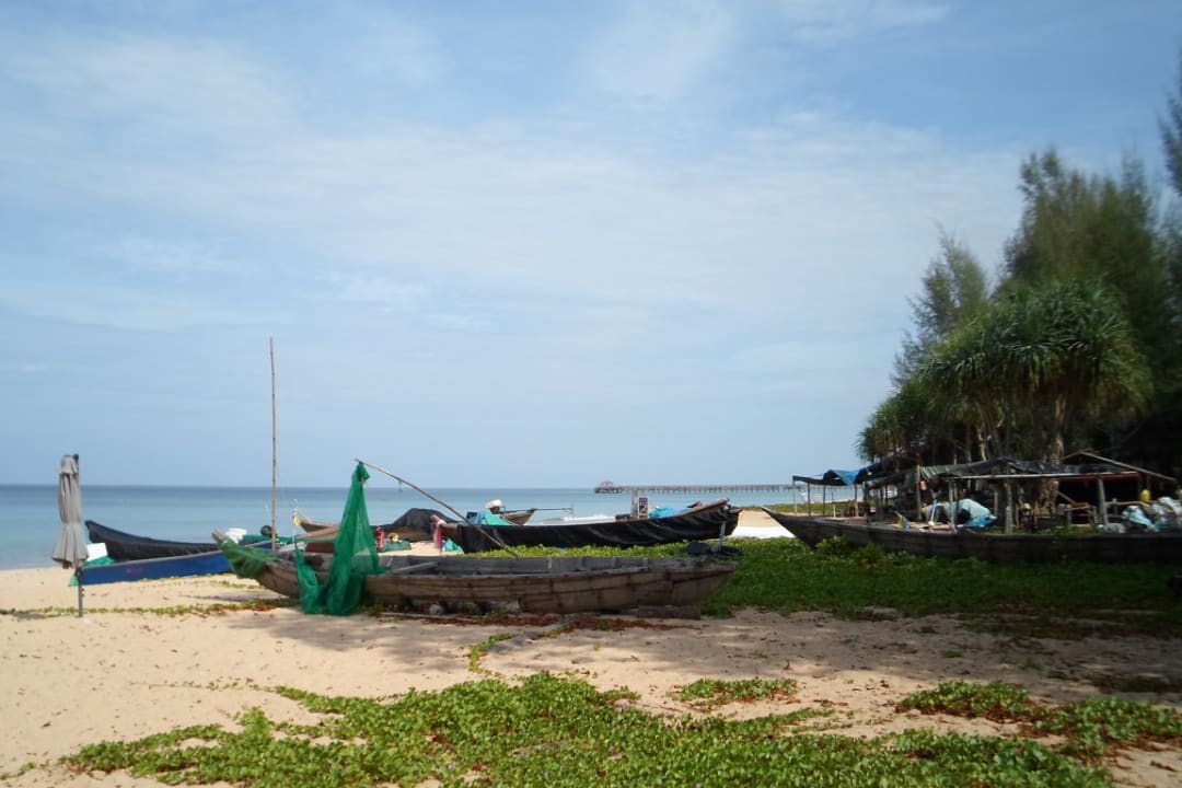 Blick nach rechts, ein paar Fischerboote und Buden. Alles sehr ruhig und weitläufig...