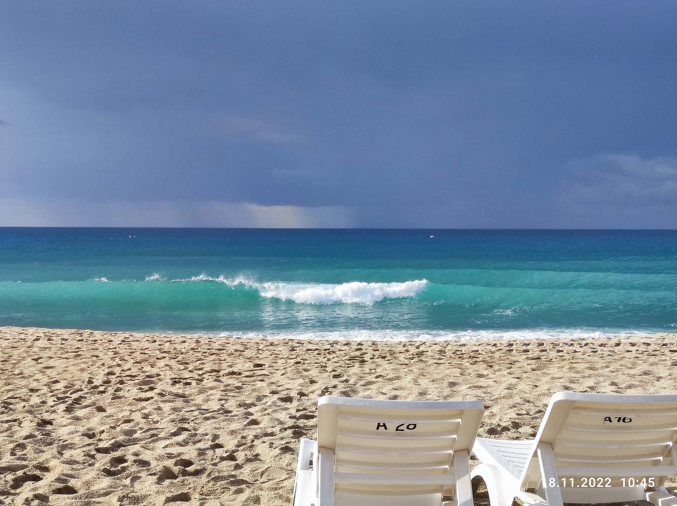 Am Strand bei aufziehendem Gewitter.