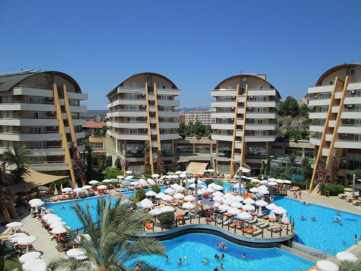 Ausblick vom Balkon auf den Pool