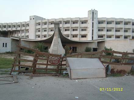 Halb aufgebaute und halb verlassene Hotels nebenan
