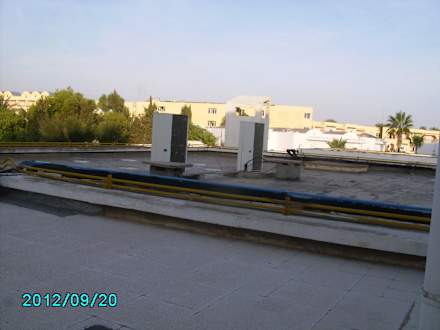 BalkonUnter dieser angeblichen Dachterasse befindet sich die Disco, also auch unter unserem Zimmer. Vor zwei Uhr morgens war an Schlafen zu denken !