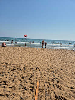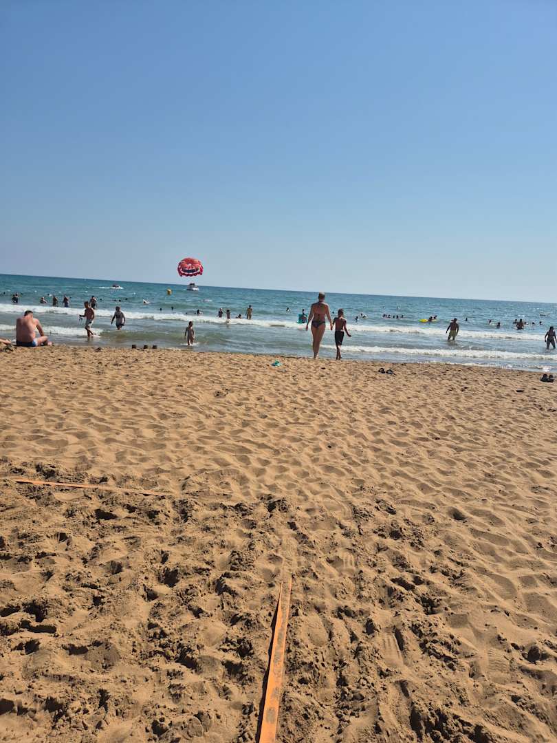 schöner Sandstrand. Geht sehr flach in Meer rein, perfekt für Nichtschwimmer