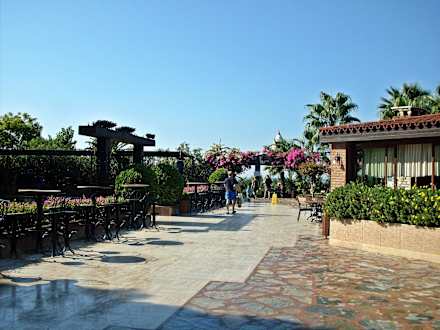 Platz beim Pool (links Theater, rechts Restaurant)