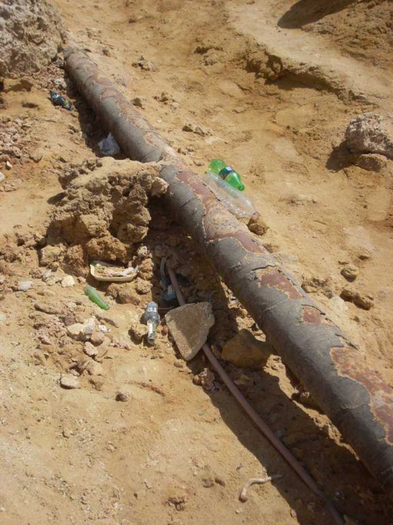 Rostige Rohre am StrandSolche Rohre führen von der Hotelanlage direkt über den Strand ins Wasser, daneben alte Plastikflaschen und Müll
