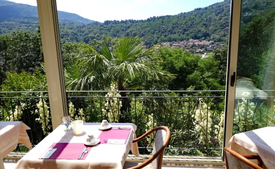Frühstückstisch mit Aussicht auf das gegenüberliegende Italien