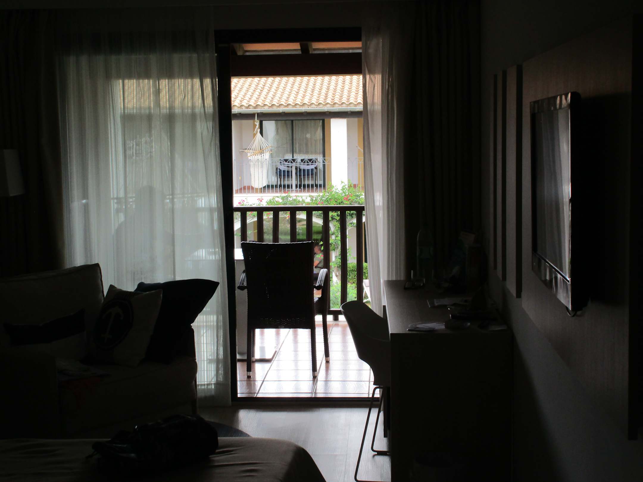 Sicht von innen auf den Balkon wo man sich zurück ziehen kann.