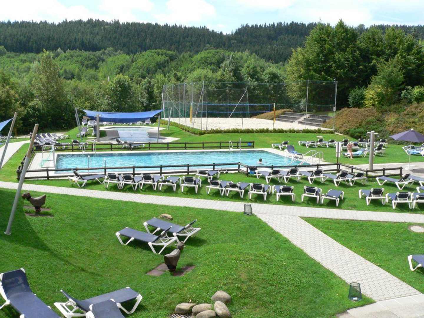 Pool, Beachvolleyball und Liegewiesen