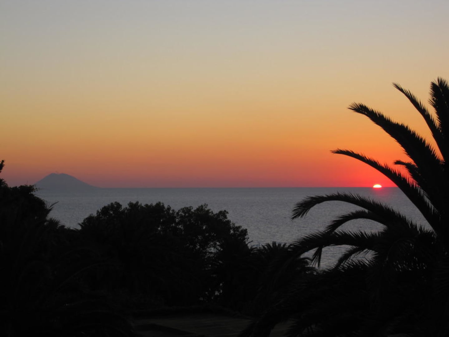 Aussicht von der Außenterrasse.Aufgenommen beim Abendessen auf der Aussenterrasse des Hauptrestaurants. Im Hintergrund ist deutlich der Stromboli zu erkennen.