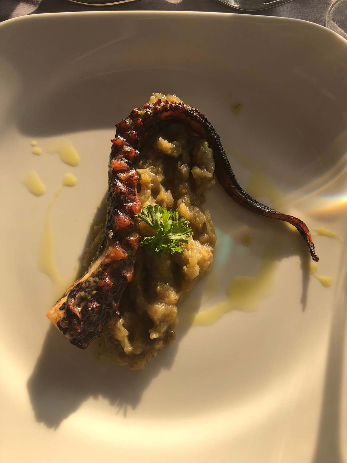 Gegrillter Octopus (Vorspeise beim Essen auf der Dachterrasse)