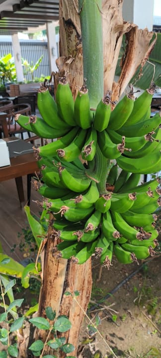 Am Pool, toller Blick auf die Bananen Stauden.