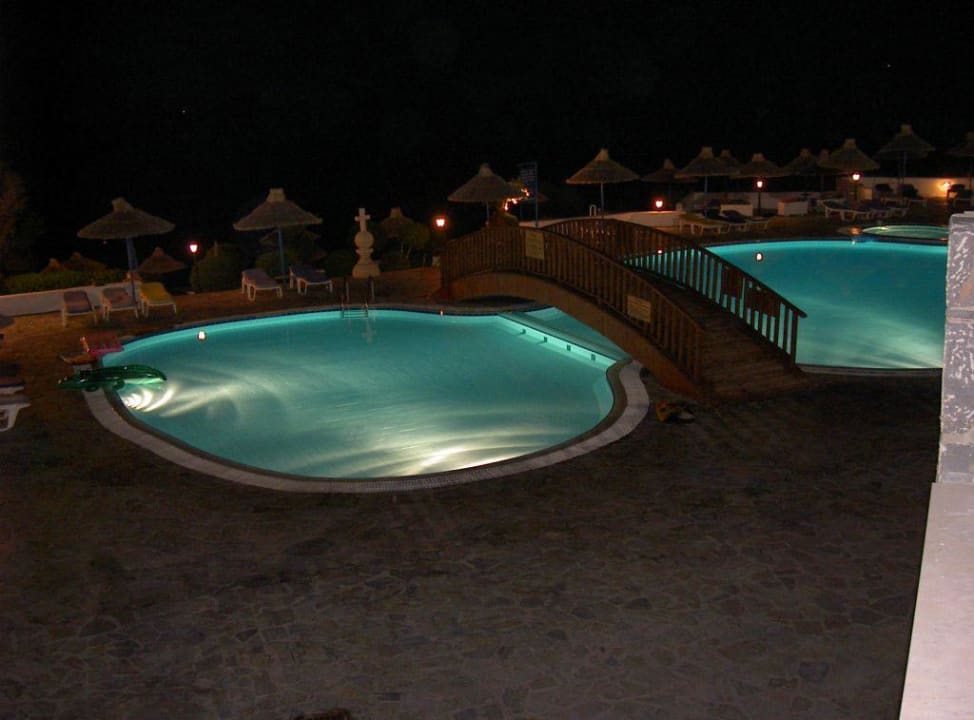 Die Poollandschaft bei Nacht.
