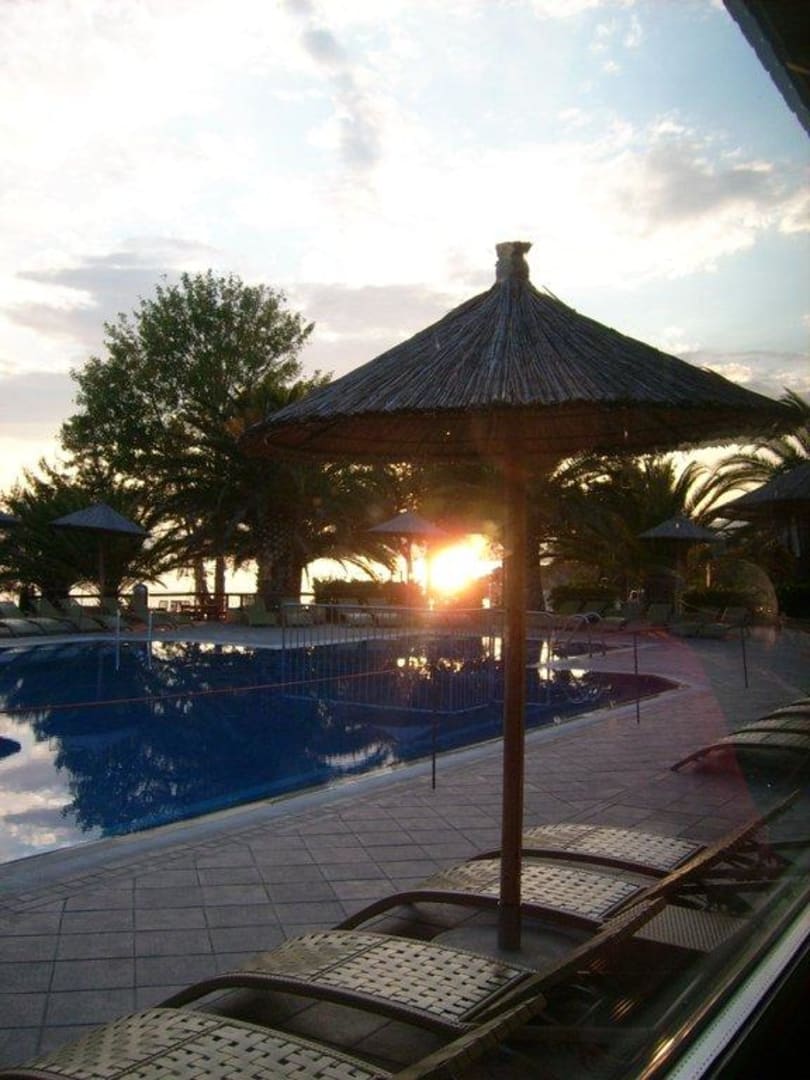 Pool abends vom Speisesaal aus