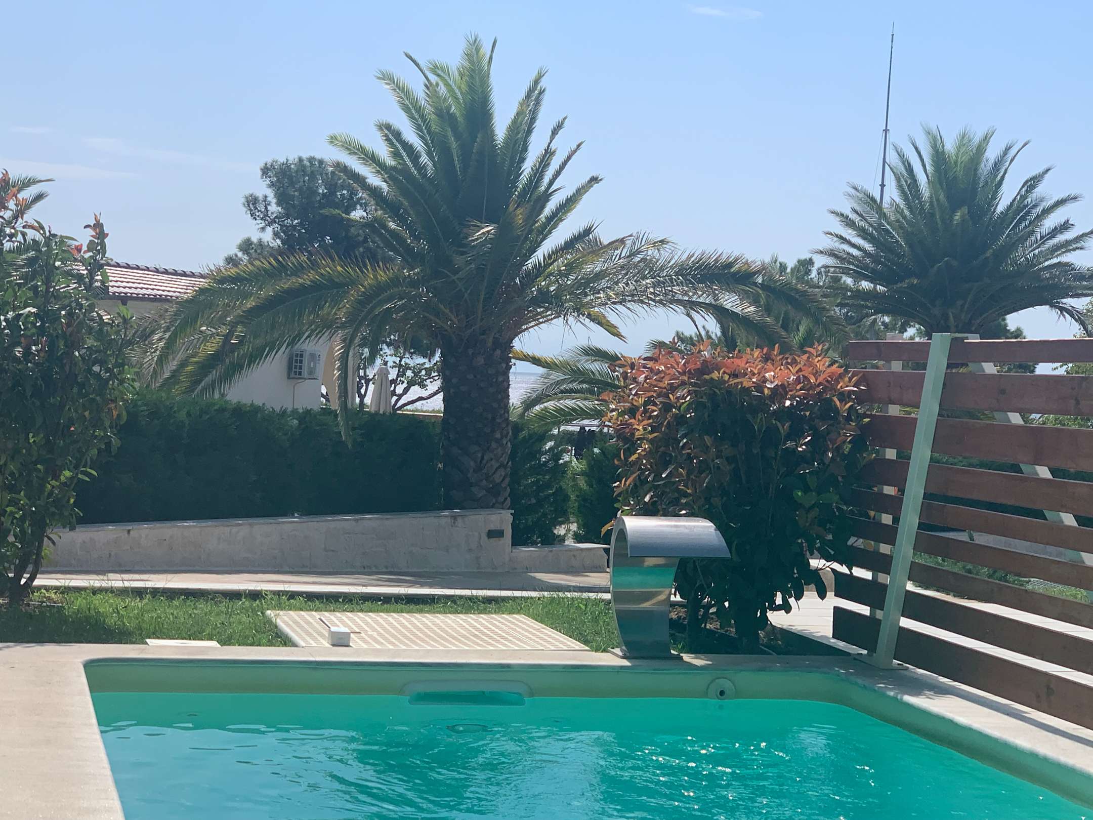 Blick in Garten und zum Meer