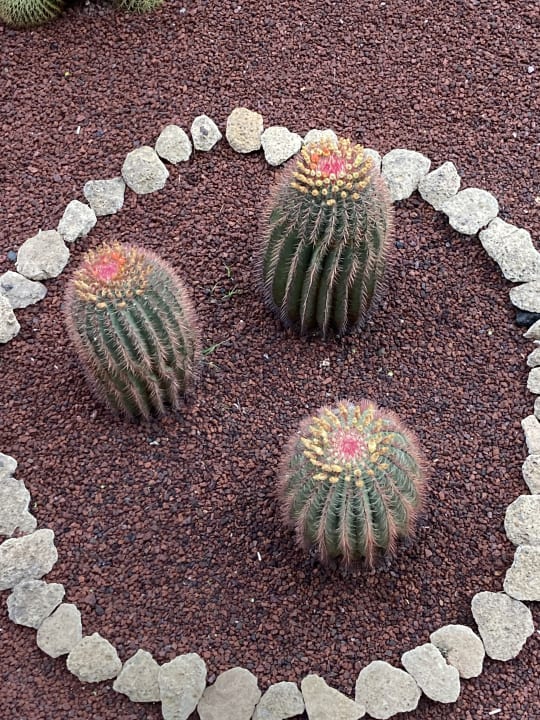 Überall blühen auf dem Gelände Kakteen, auch sehr Große.