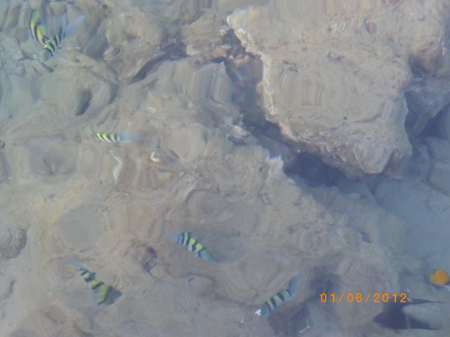 Man muß noch nichtmal Schnorcheln um Fische zu sehen.