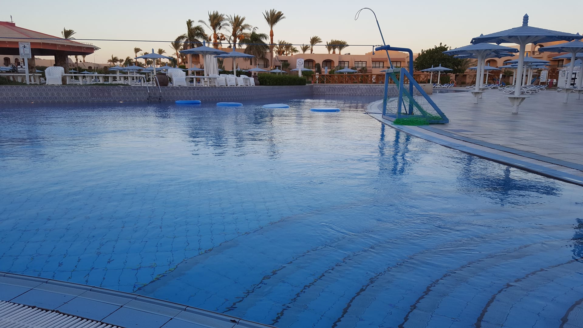 Poolanlage bei Dämmerung