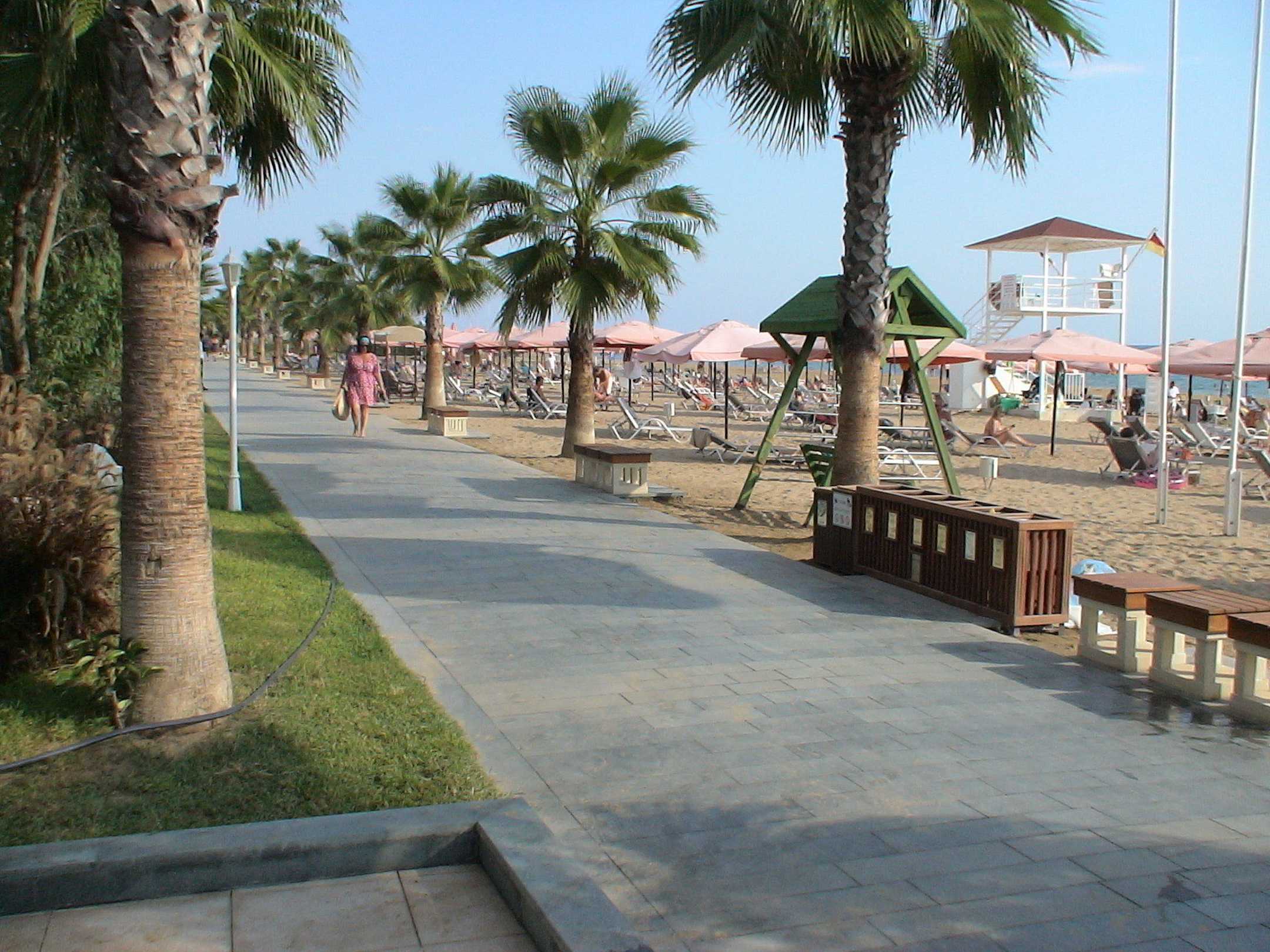 Fußweg und Hotelstrand