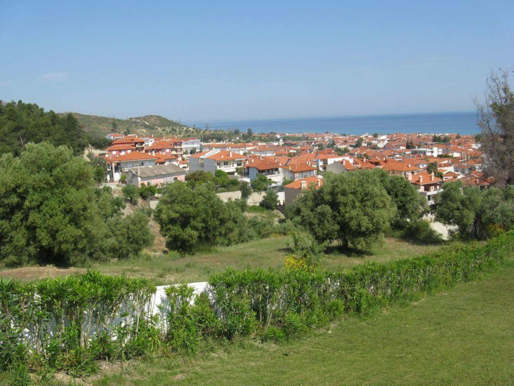 AussichtDas hier ist die schöne Aussicht vom Hotel aus auf Pefkohori.Einfach traumhaft diese roten Dächer mit der Kombination mit dem blauen Meer.